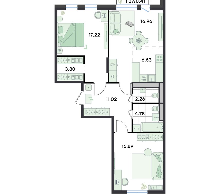 Трехкомнатная квартира