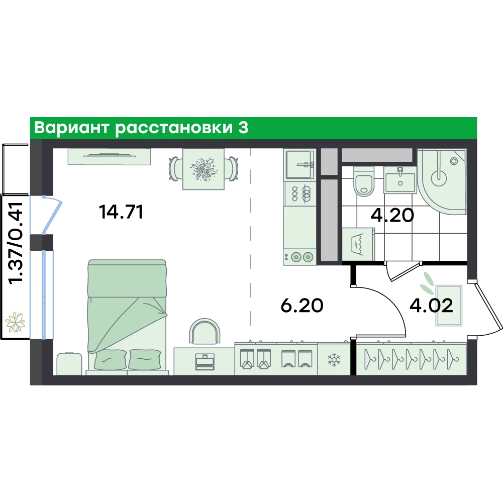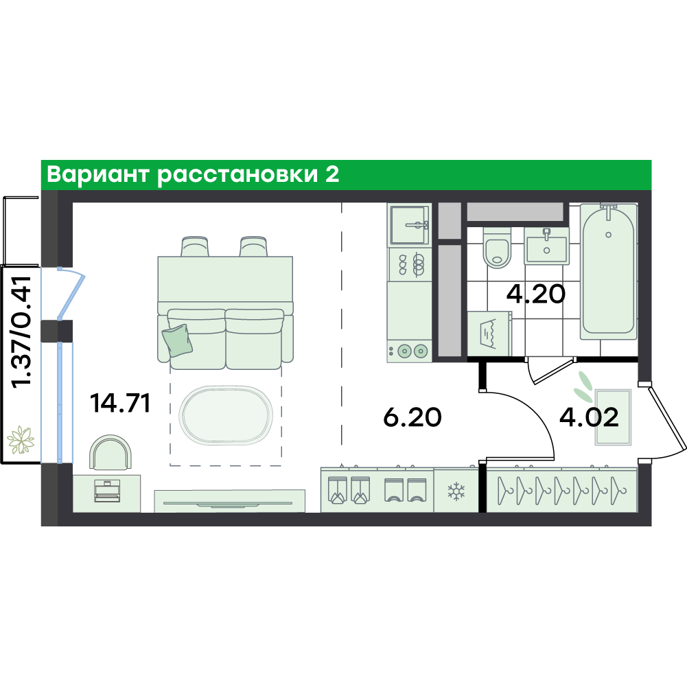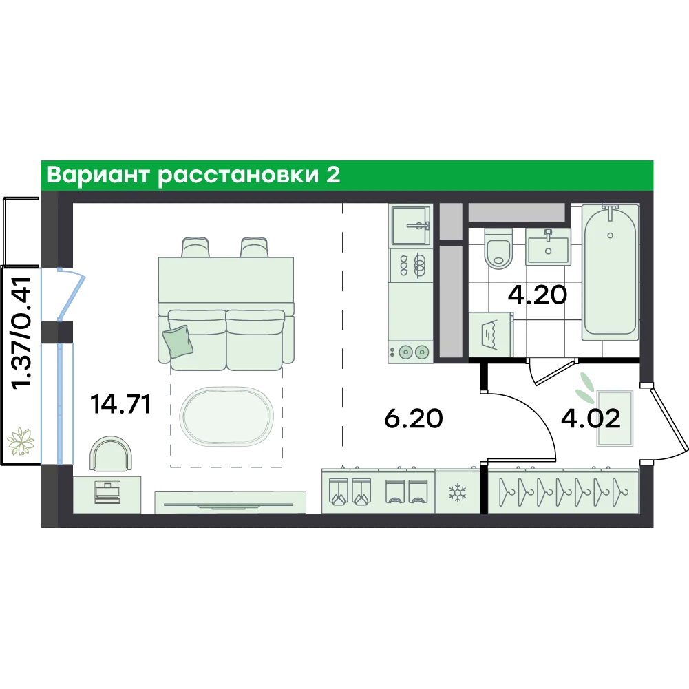 Студия  29.5 м2