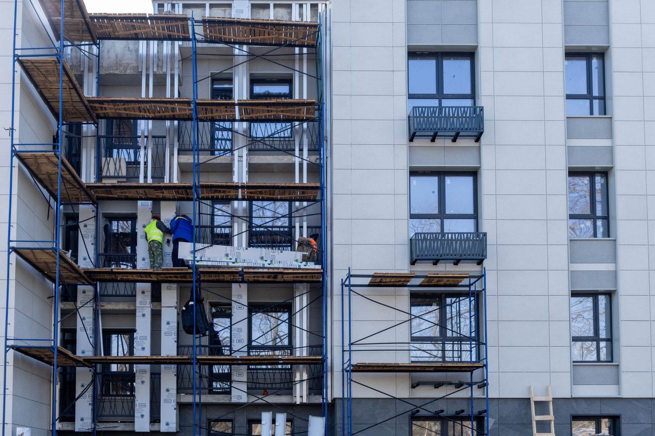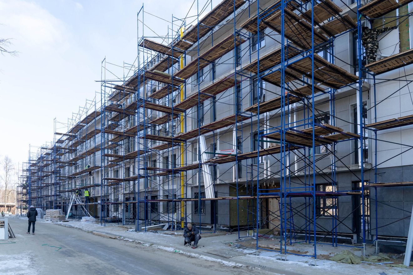 - Продолжаются работы по устройству навесного вентилируемого фасада:
