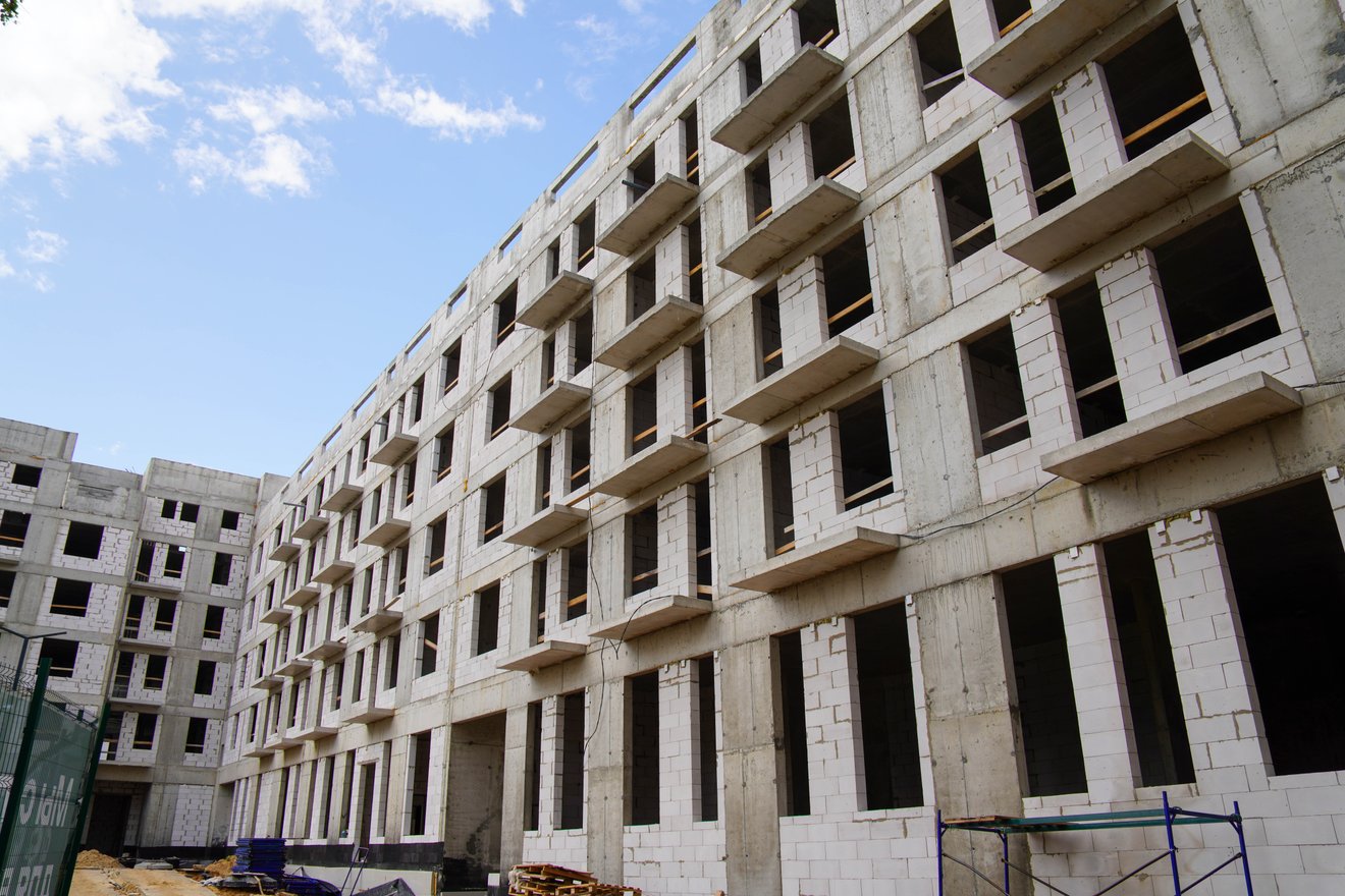- Завершены работы по устройству наружных и внутренних стен на 2-5 этажах, на антресольном этаже.