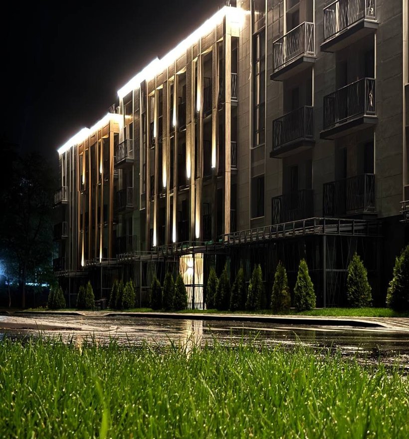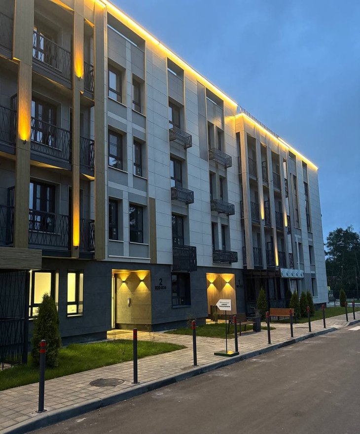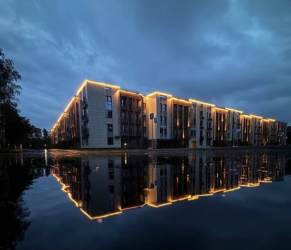 ✅ Контурная подсветка парапета выделяет архитектурные объемы
