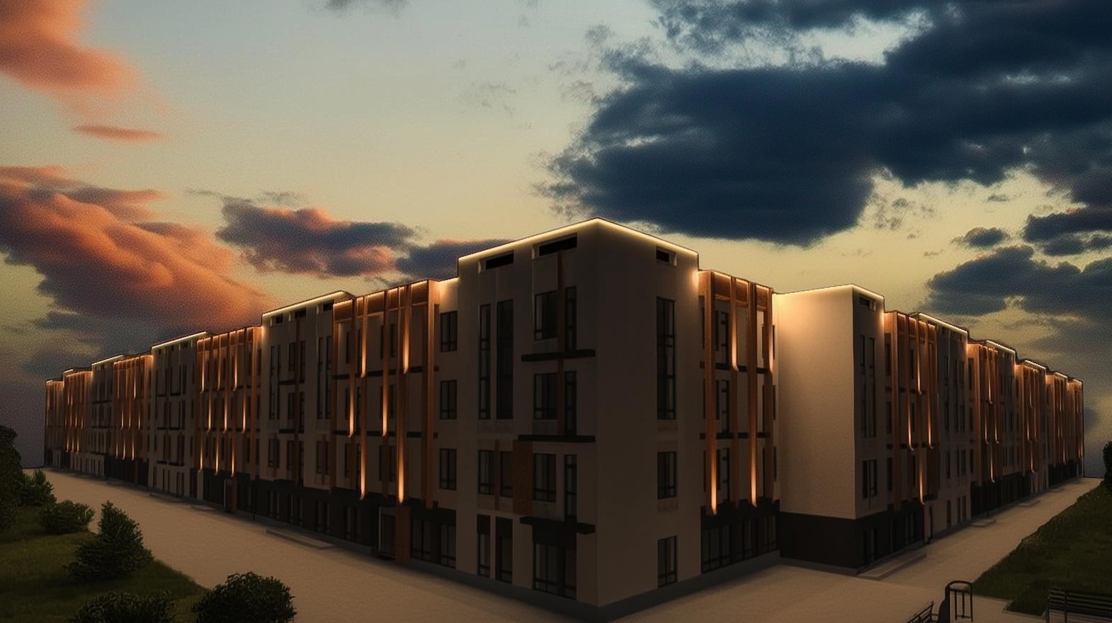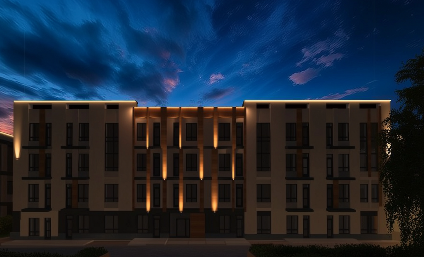 🔸 Архитектурные светильники с мягким светом подсветят фасад. Светильники спроектированы так, чтобы направлять свет на стены и не попадать в окна квартир.